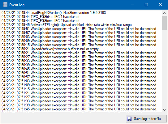 Opens a new window where Data Server events and error messages are logged. The Event log is useful for detecting problems and also includes a Save log to textfile button that enables you to save the log output to a file on disk.