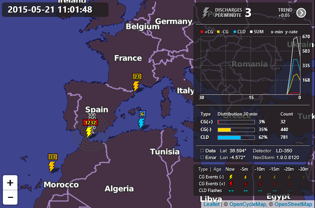 Statistical graphs shows the past development of lightning activity as well as current trend.